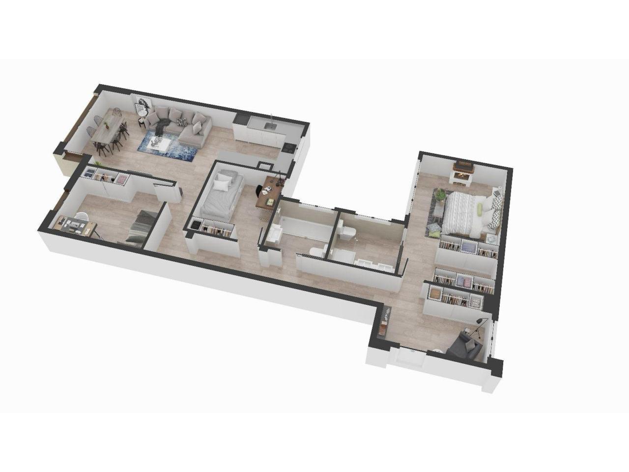La orientación sur proporciona una excelente entrada de luz natural durante todo el día, realzando el atractivo de los techos altos, que aportan una sensación de mayor amplitud y elegancia. Los suelos de cerámica de alta calidad combinan durabilidad con un diseño sofisticado, mientras que la carpintería exterior de PVC ofrece un óptimo aislamiento térmico y acústico.
