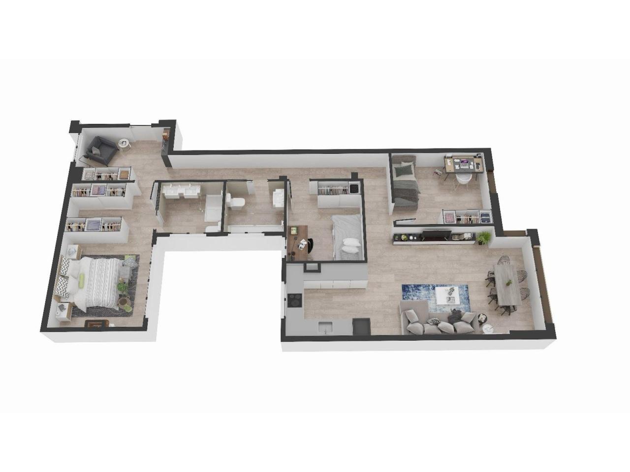 La vivienda dispone de tres amplias habitaciones que garantizan el máximo confort, dos baños modernos con acabados de primera calidad y una cocina totalmente equipada, diseñada para satisfacer las necesidades más exigentes.