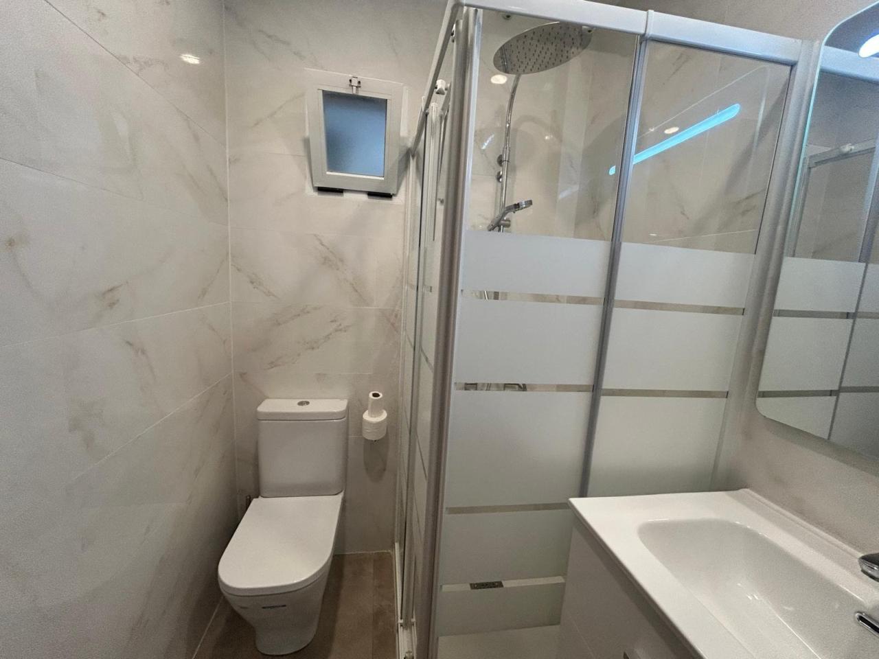 Un baño completo renovado, funcional y con un diseño actual.